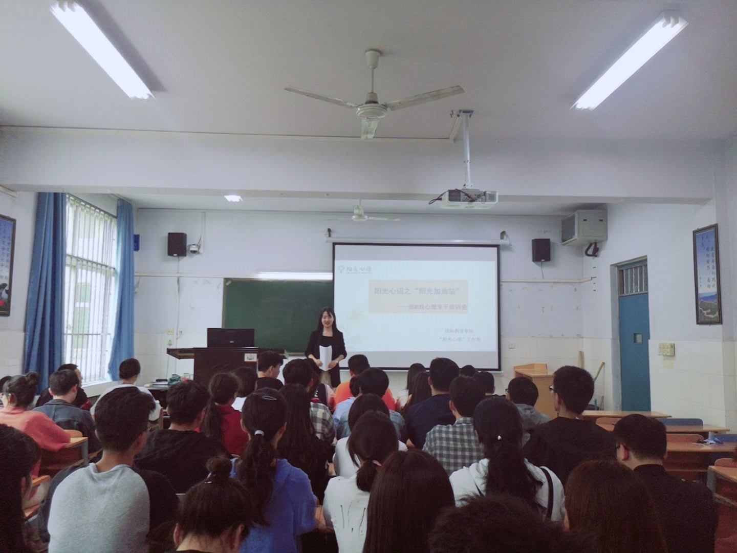 为进一步排查出学生心理问题,beat365最新版2022于2019年9月19日下午一点半在A207教室开展了--阳光心语之“阳光加油站”心理培训课程,本次会议由心理专干丁玮老师主讲,19级代班长和各班班委参加。