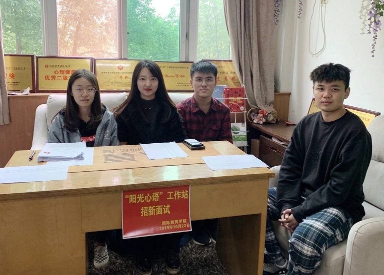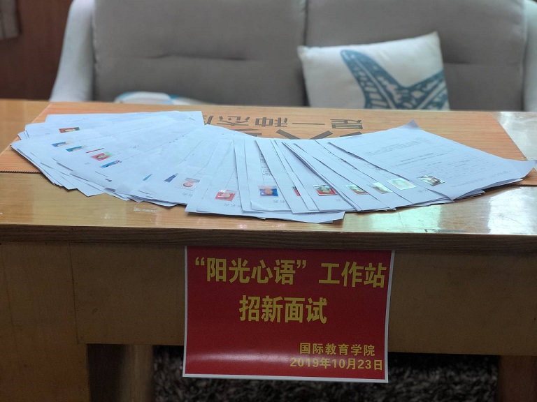 2019年10月23日中午一点beat365最新版2022“阳光心语”工作站新一轮招新面试活动于行政楼311教室召开。阳光心语工作站站长丁玮老师以及工作站负责人郭猛、李垲熠、李珂均出席了本次面试并担任面试官。本次招新是为了给工作站注入“新鲜血液”,为同学们提供一个更广阔的学习空间,一个了解并热爱上心理的平台。