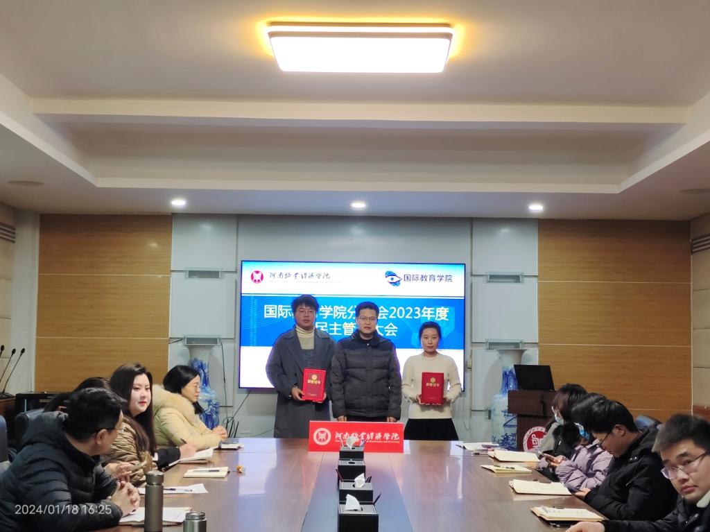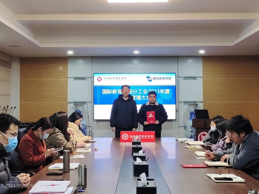 随后学院对2023年度先进个人和集体进行了表彰,与会领导为获得者颁发了获奖证书。