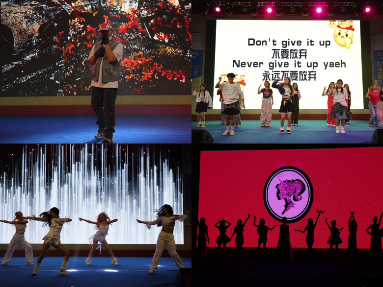 舞蹈《Fighting》活力四溢,舞者们身姿矫健,充满力量与美感的舞蹈瞬间点燃了现场的气氛。歌曲《梁山伯与茱丽叶》和《八九不离十》深情动人,歌手们动人的歌声唤起了观众们的情感共鸣,让人陶醉其中。礼仪走秀《Barbie》展示了学院学生的优雅与自信,模特们身着华丽礼服,展示着各种时尚造型,成为现场的一道亮丽风景线。说唱《黑青W》以其独特的风格和激烈的节奏,让观众们沉浸在强烈的音乐氛围中,展现了青春的激情与活力。最后二零贰乐队带来的《私奔》将现场气氛推向了高潮,乐队的激情演奏和歌手的深情演绎,让观众们沉浸在一首充满力量的摇滚音乐中,仿佛感受到了一场心灵的震撼。