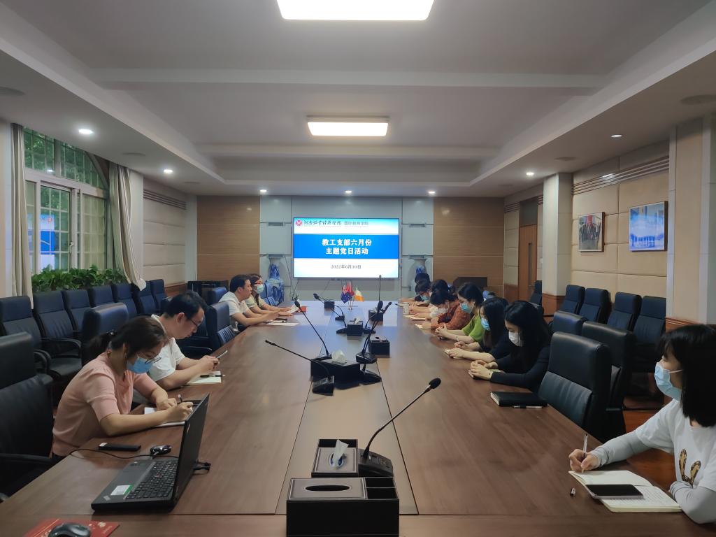 6月10日上午,beat365最新版2022教工党支部在英才校区教学办公楼113会议室开展六月份主题党日活动,支部全体党员参加会议,教工党支部书记李江红主持。