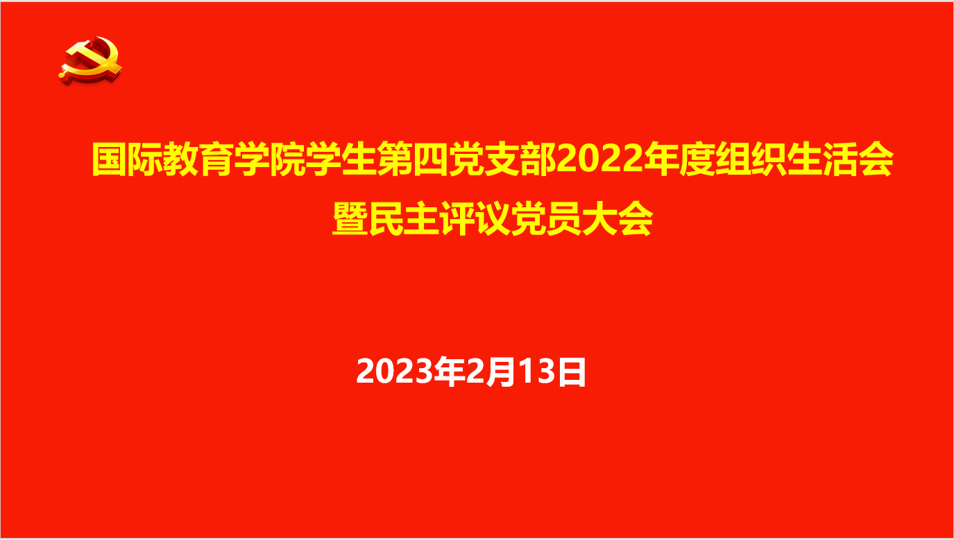 根据校党委《关于召开2022年度基层党组织组织生活会和民主评议党员的通知》(校党〔2023〕3号)具体要求,2月13日晚上,我校学生第四党支部通过线上形式召开2022年度组织生活会暨民主评议党员大会。党支部全体党员参加会议,会议由党支部书记何季霖主持。