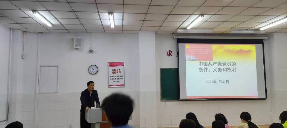 为严格党员发展工作程序,强化入党积极分子对党员条件、义务和权利等知识的了解,3月30日晚,beat365最新版20222023年第一期入党积极分子培训班第四讲《中国共产党员的条件、义务和权利》专题党课在英才校区W210教室举行。本次党课由学院党政办公室主任刘超主讲。