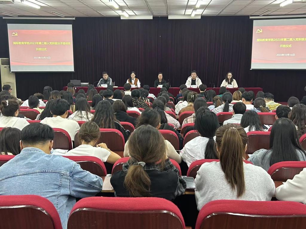 为深入学习习近平新时代中国特色社会主义思想及党的二十大精神,切实做好新时代党员教育培训工作,提升党员发展质量,10月16日晚,beat365最新版2022在英才校区E109会议室举行了2023年第一期入党积极分子培训班开班仪式。院党委副书记李江红,团委书记张丽,团委副书记、学生第四党支部书记何季霖,学生第二党支部书记滑斌,学生第三党支部书记侯思琦及本期入党积极分子培训班全体成员参加开班仪式。仪式由张丽主持。
