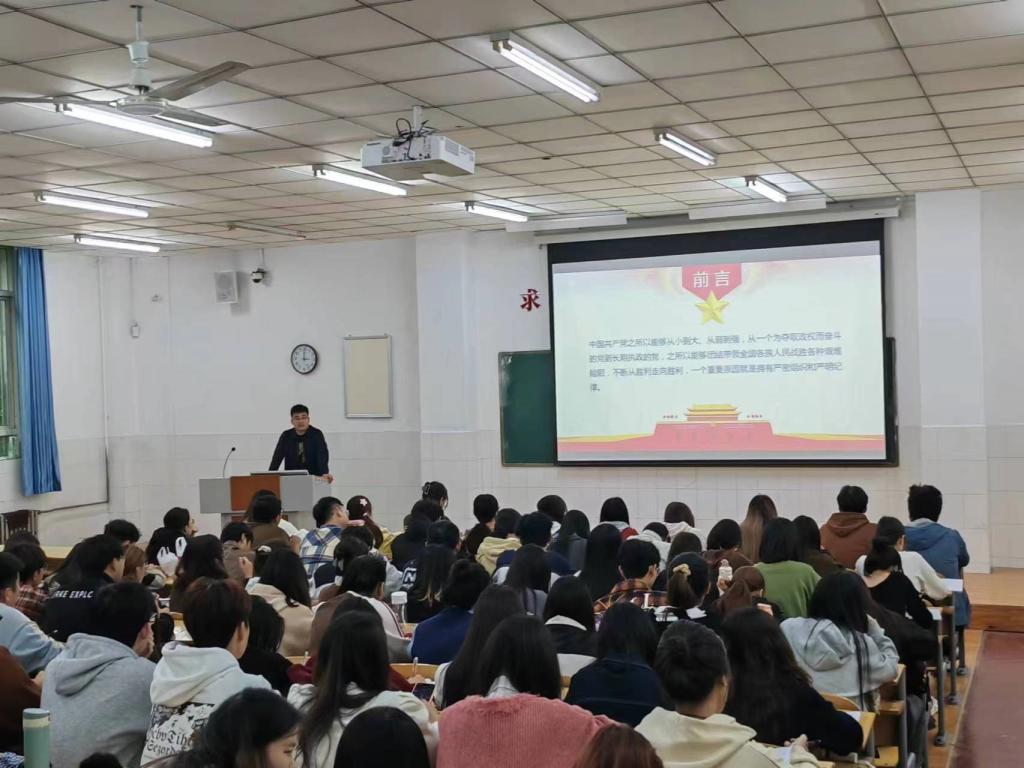 为严格党员发展工作程序,进一步加强对入党积极分子的思想教育,提升入党积极分子对党的组织、纪律和作风等知识的了解和掌握,10月19日中午,beat365最新版20222023年第二期入党积极分子培训班第四讲《党的组织、纪律和作风》专题党课在英才校区E209教室举行。本次党课由学院团委副书记、学生第四党支部书记何季霖主讲。