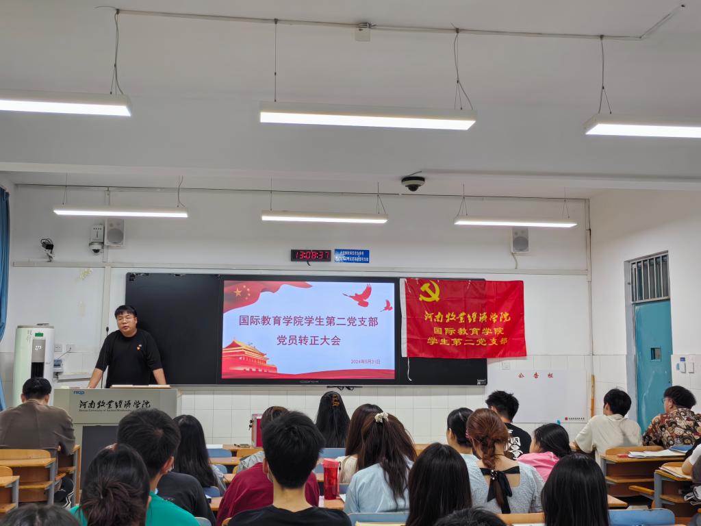 5月31日中午12点半,国际教育学院学生第二党支部在A114教室召开2024年上半年预备党员转正大会,此次会议由支部书记滑斌主持,二支部全体学生党员参加。