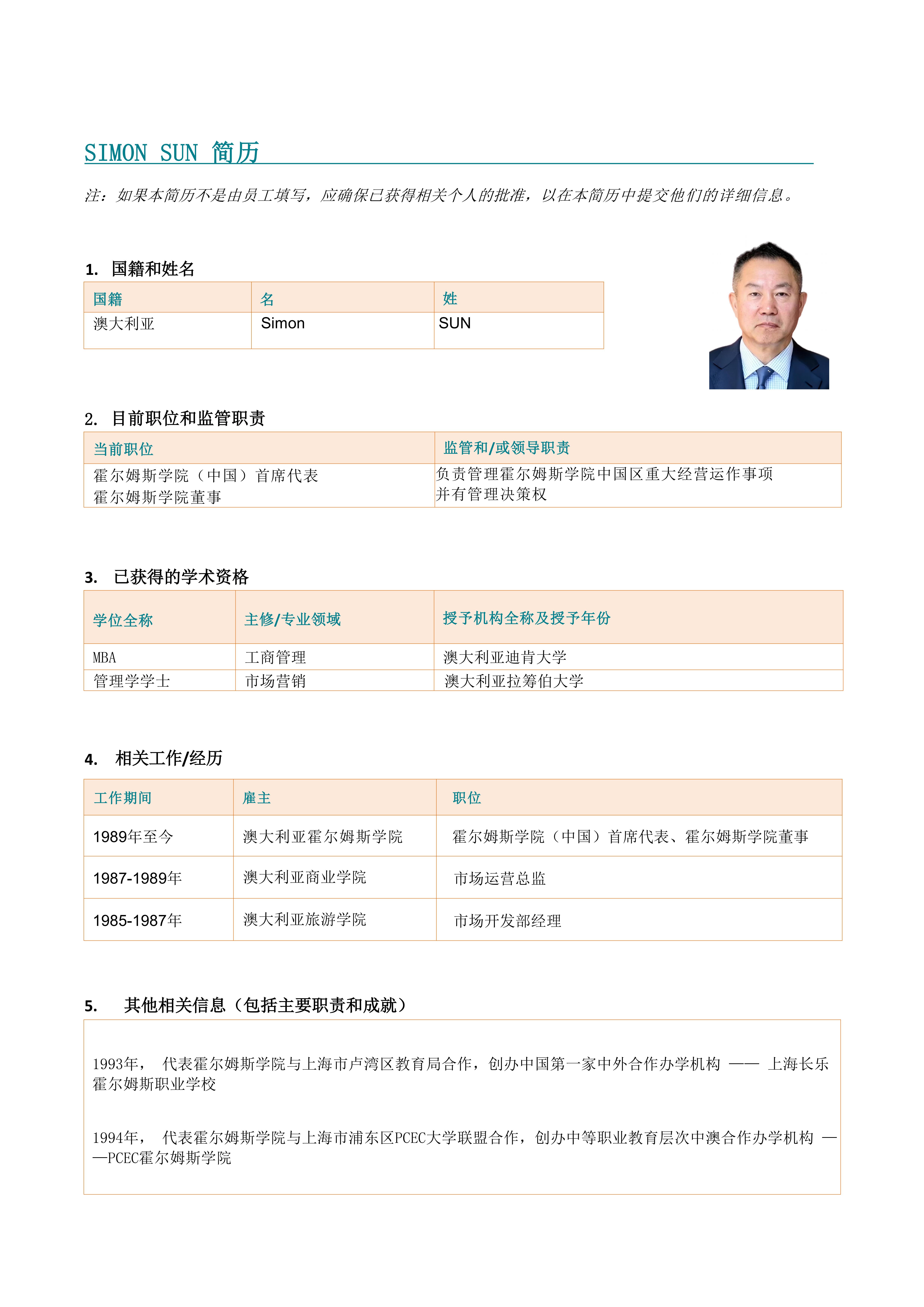 联合管理委员会成员:Yi(Simon)Sun(中国区执行董事)